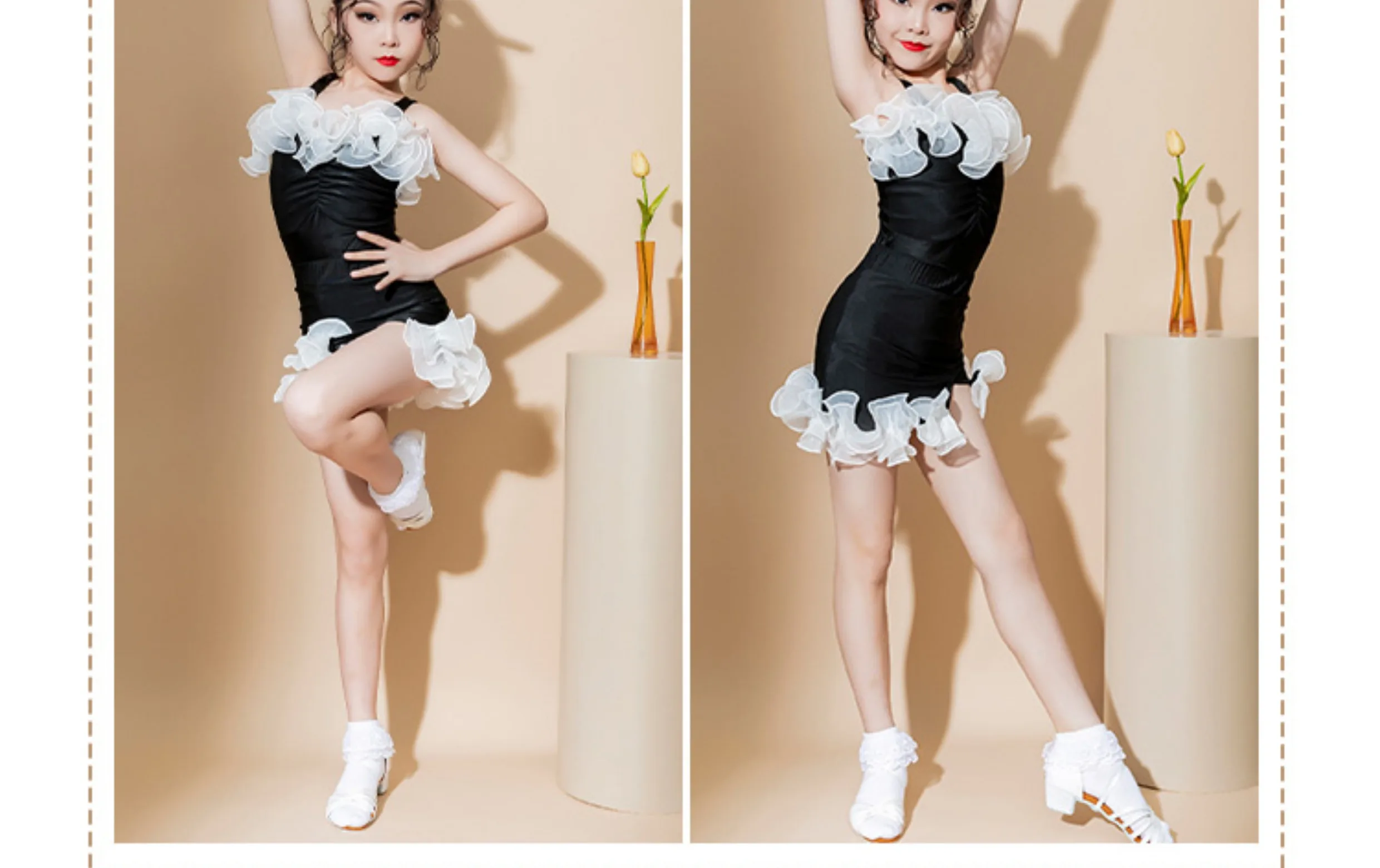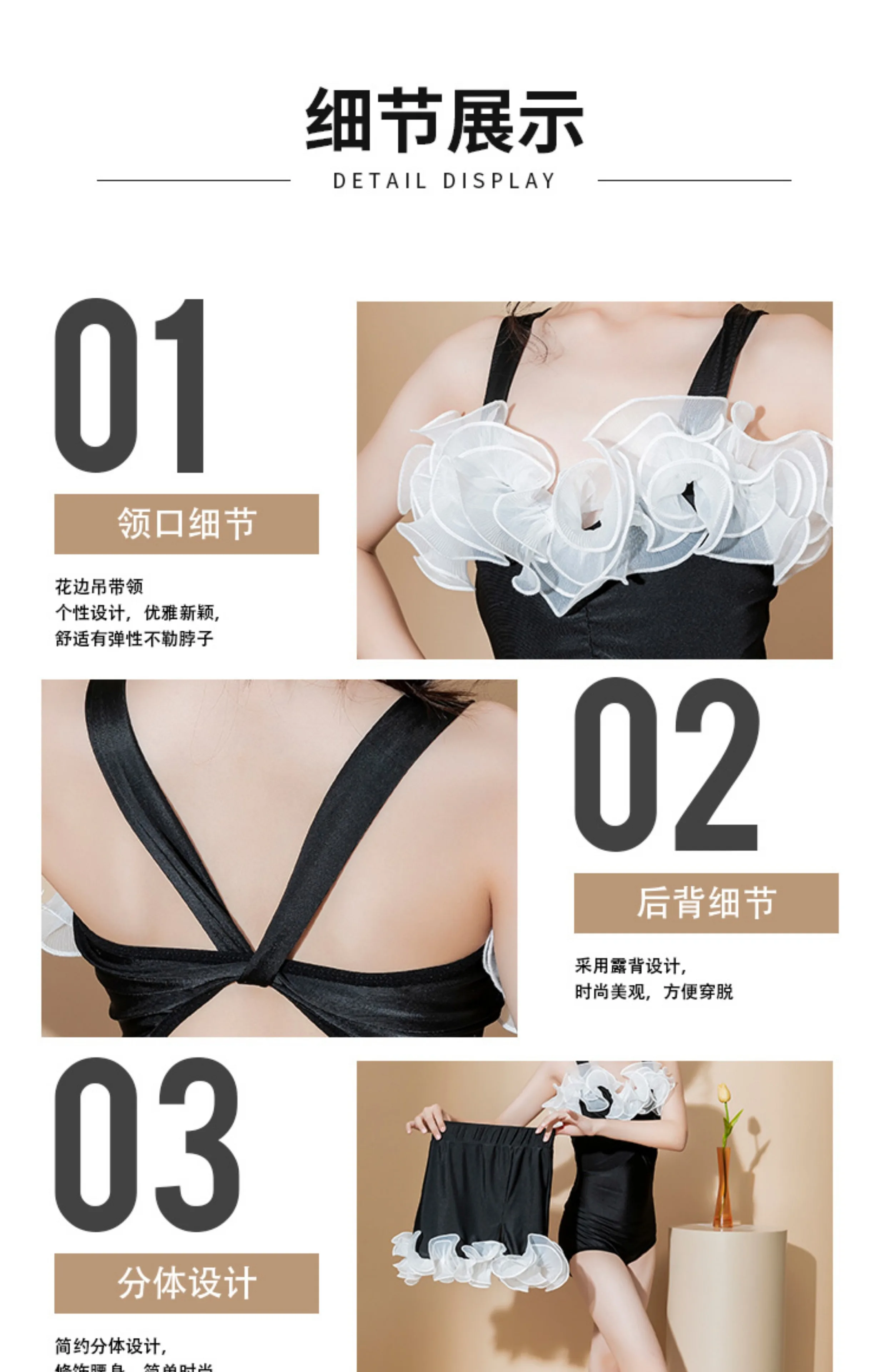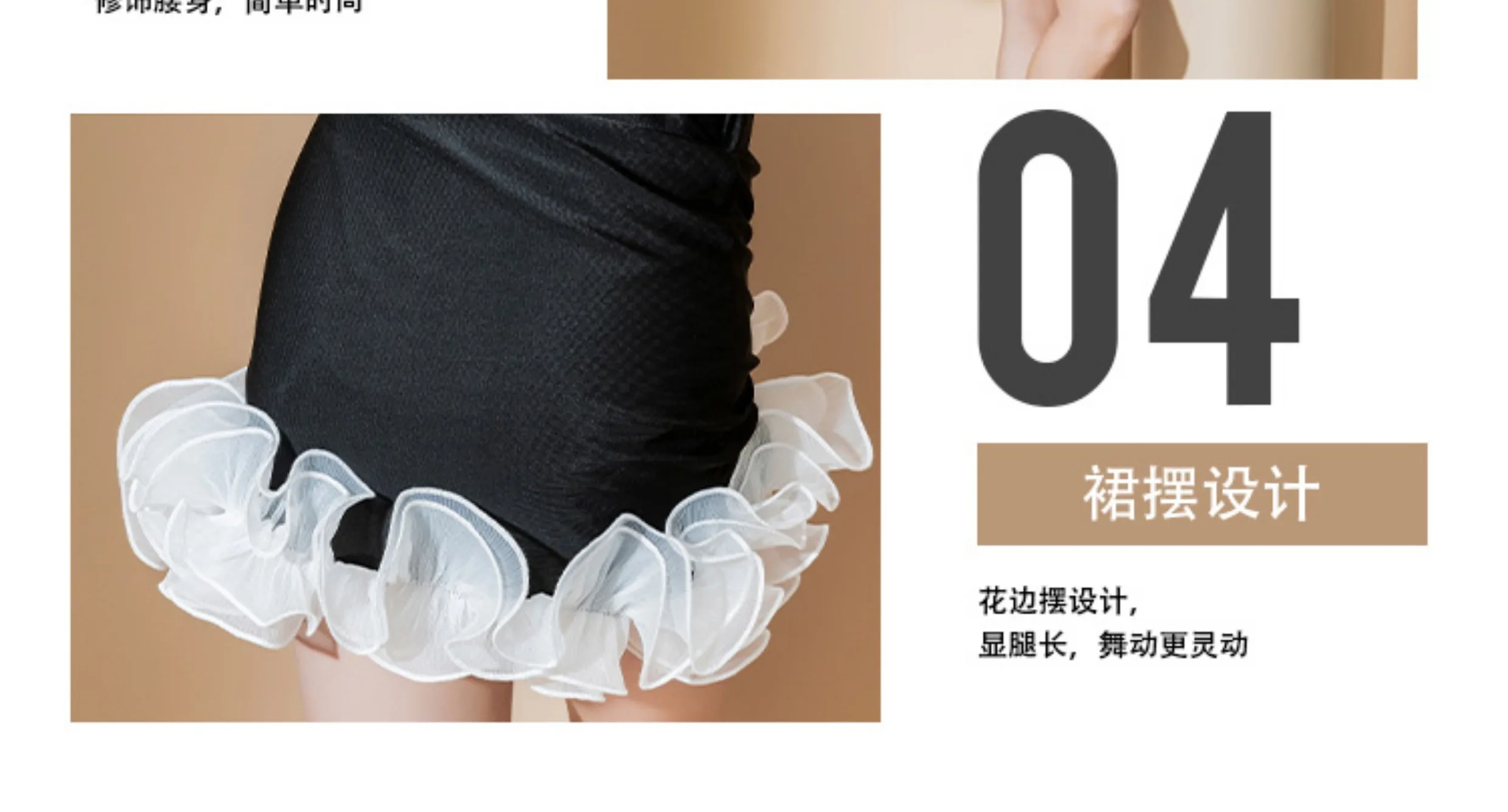 Body e gonna con volant bianchi applicati su décolleté e fondo gonna